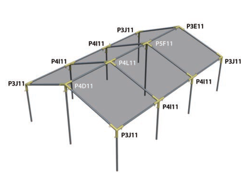 Medium peak canopies are canopies that feature a less steep angle not too close to the flat at their peak, creating a great tent that provides more peak than their low peak cousins. At A1 Tarps, you'll find medium peak canopy fittings and other canopy hardware pieces that make assembling your medium peak canopy easy to do. Additionally, these types of canopies are designed with a specific angle that promotes water runoff, preventing pooling on your structure. This feature is particularly beneficial in areas prone to rainfall or snowfall. Medium peak canopies make excellent carports or shaded tents - making them a great choice for outdoor events and gatherings.