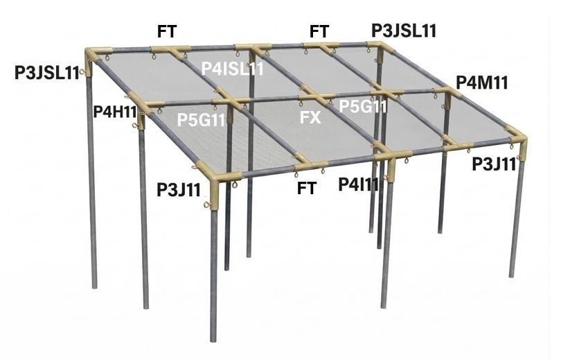 Our sloped canopy tent connectors are made of strong galvanized steel and are welded for even more strength. They provide eyebolts for easy construction. By combining these canopy pipe fittings, connectors, a canopy frame, and durable tarps, you can create the perfect semi-permanent structure with a slanted roof.